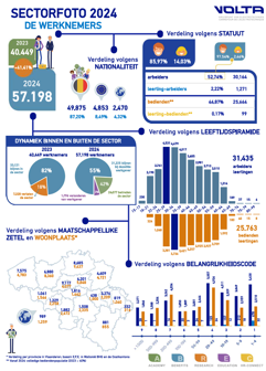 Wat opvalt, is de trouw van onze werknemers. Slechts 3% van de werknemers wisselde in 2024 van werkgever binnen de sector. In 2023 verlieten 7.328 mensen de sector. Nieuwe aanwervingen in 2024 zijn moeilijk volledig te meten bij de bedienden (omdat we geen vergelijking met 2023 kunnen maken), maar we weten dat het aantal arbeiders amper wijzigde.
