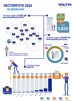 Elk jaar nemen we een moment om stil te staan bij wie we zijn als sector, waar we ons bevinden, hoe we evolueren en welke mensen achter onze bedrijven schuilgaan. De kaart van België vertelt meteen een bekend verhaal: onze maatschappelijke zetels zijn nog steeds sterk geconcentreerd in Vlaanderen, met Antwerpen op kop, gevolgd door Oost- en West-Vlaanderen. Vlaanderen herbergt bijna 60% van onze bedrijven, Wallonië is goed voor een derde en Brussel huisvest iets meer dan 8%. Een handvol (47) bedrijven heeft zijn maatschappelijke zetel zelfs buiten België.