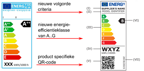 BELANGRIJK: De producten worden niet gedegradeerd door de nieuwe classificatie, maar worden opnieuw geclassificeerd aan de hand van een andere berekeningsbasis. De nieuwe classificatie van A tot G is gekozen om voldoende ruimte te hebben voor toekomstige ontwikkelingen.